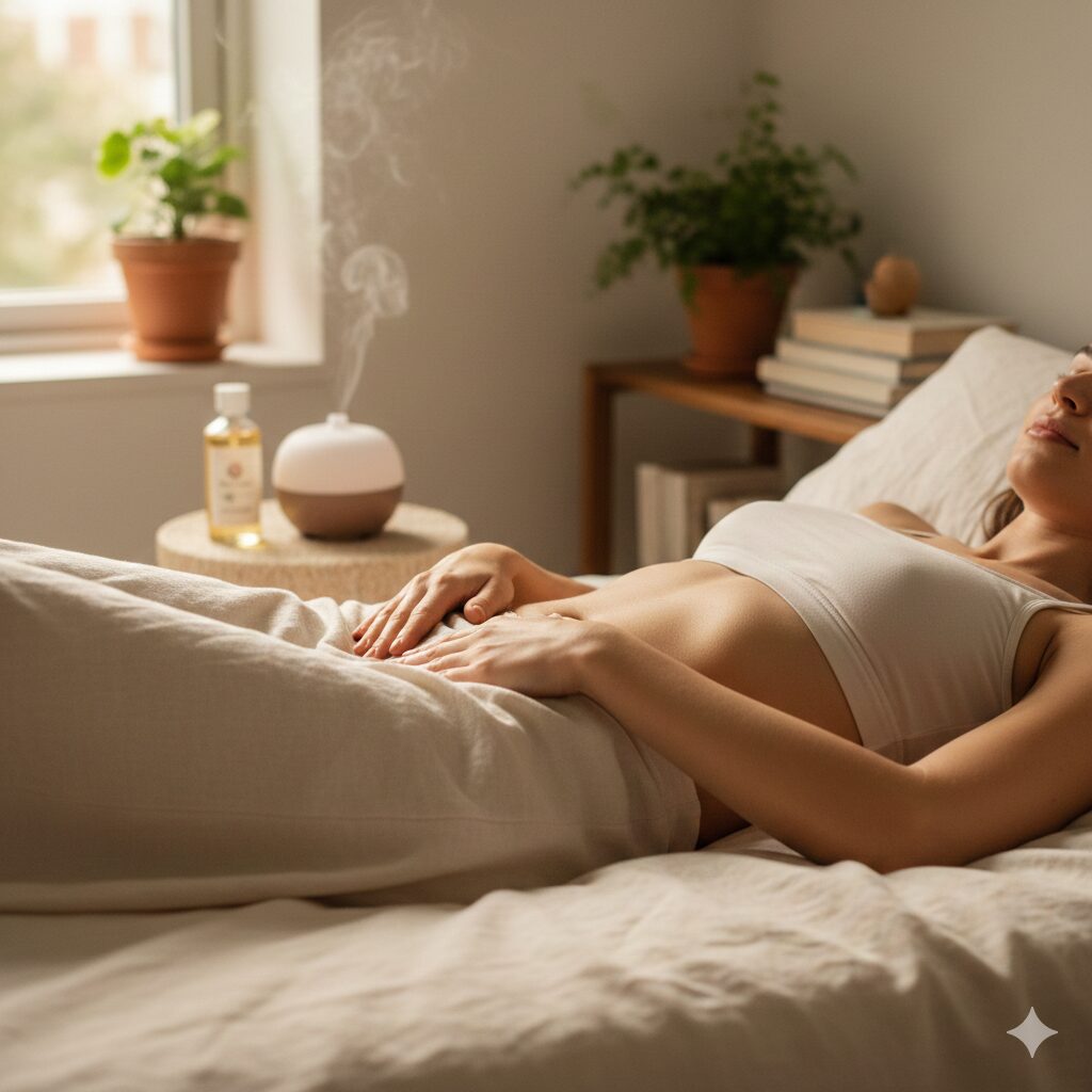 お腹を温めながらマッサージすることで、血行やリンパの流れが促進され、腸の働きが活発になります。これにより、消化機能の活性化や、冷え・むくみの解消にも繋がるとされています。