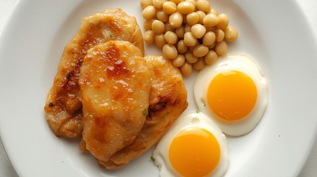 タンパク質が含まれる食材は、鶏むね肉、ささみ、サバ、大豆製品、卵などです。